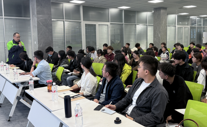 王茂強總經理以生動的語言和豐富的實例,向學生們詳細闡述了公司在產業價值鏈中的定位、企業的組織架構以及各部門的業務情況。他結合自己的職業發展歷程,鼓勵學生們要不斷學習新知識,勇于突破自我,為實現個人價值和企業發展貢獻力量。