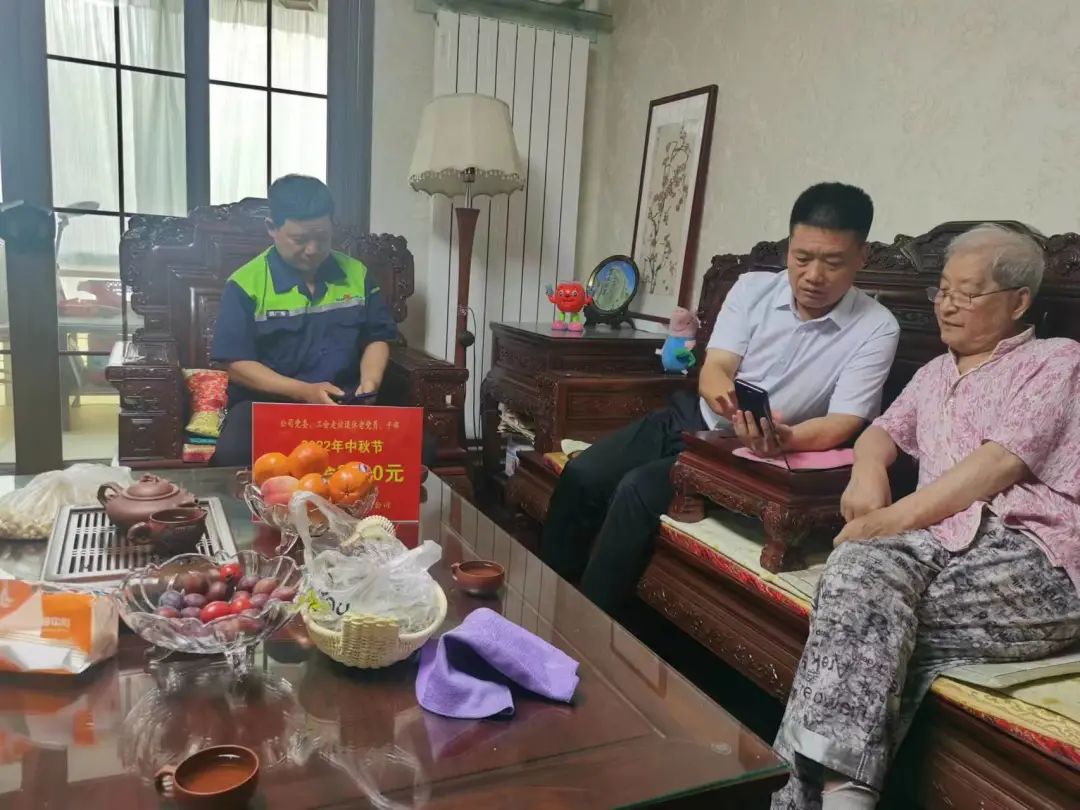 月到中秋分外明,人到中秋情更濃。值此中秋佳節(jié)來臨之際,帶著對老黨員、老干部的濃濃牽掛,9月7日,公司黨委副書記崔士啟、工會副主席魏廣海一行,受公司黨委書記、董事長委派,看望公司退休老黨員、老干部。